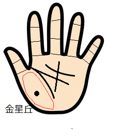 親指の付け根の下にある金星丘には家族や家庭、身内という意味がありますが、この手のひらの部分にほくろがある手相の人は、ほくろがその運勢を阻害してしまいますので、家族や身内、親戚の人などに裏切られたり、面倒をかけられたりします。