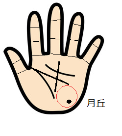 手のひらの小指側の下の方にある月丘は、芸術性、空想、想像力などの意味がありますが、この丘がふっくらとしていてほくろがある手相の人は、想像と現実の区別がつかない妄想タイプになりやすく、社会から疎外されてしまうかもしれません。