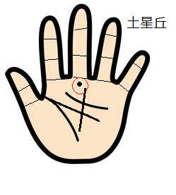 中指の下にある土星丘には、忍耐力、思慮深さ、努力などの意味がありますが、この丘にほくろがある手相の人は、集中力に欠け、注意放漫な性格になりやすいです。