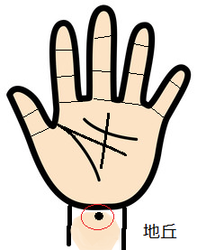 手のひらの下、手首にある地丘は先祖を意味していますが、ここにほくろがあると先祖や生家の因縁が原因で苦労をします。