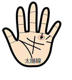太陽線がある人は、人気があって社会的に成功する人なのですが、ほくろがそれを阻害してしまいます。逆に回りの人から成功を妨害されてしまうかもしれません。太陽線にほくろがある人は、人との縁を大事にした方が良いでしょう。